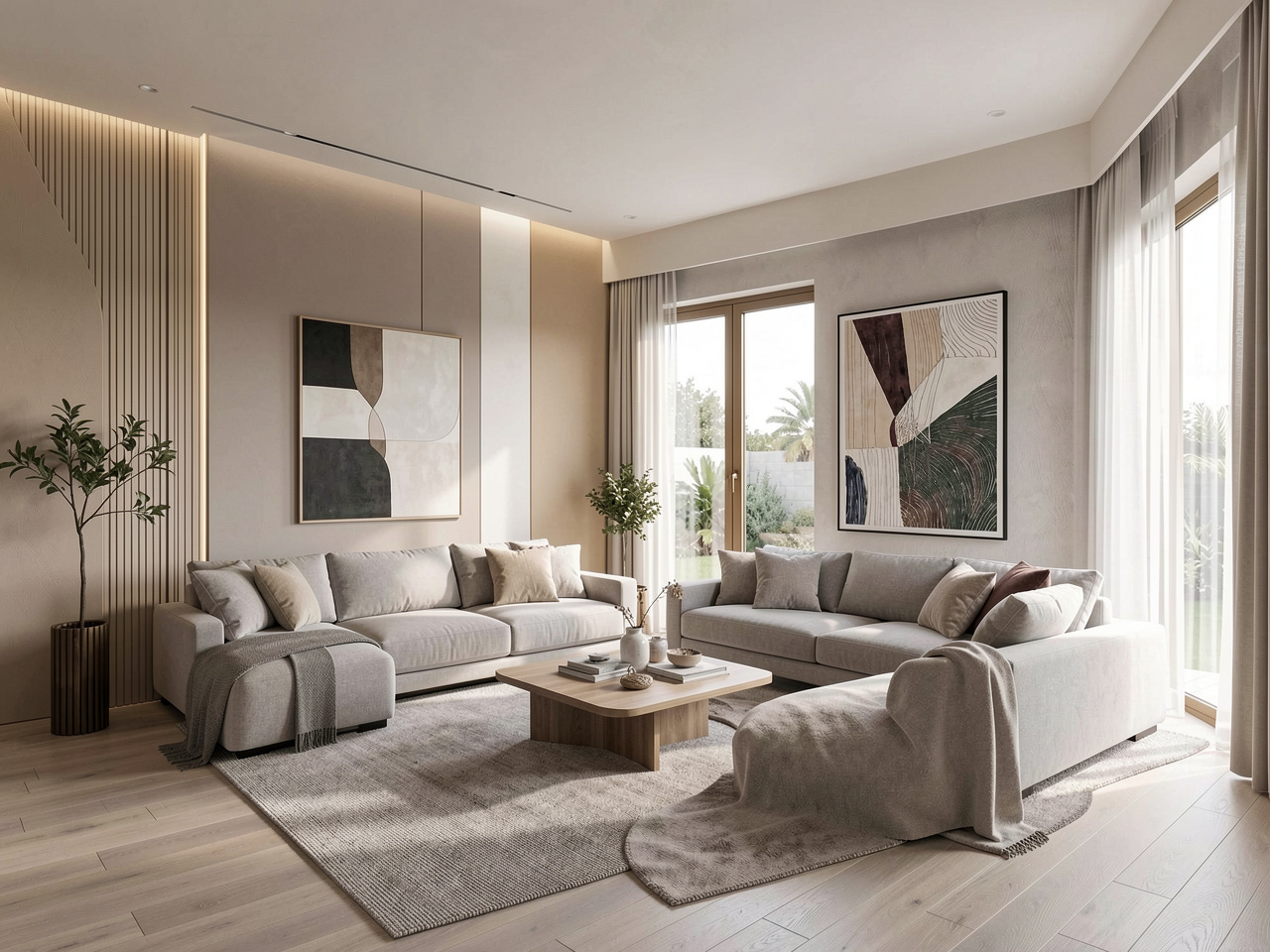 Light-toned walls remain the most effective way to open up interiors. Warm whites, pale greys, and soft beige shades reflect light evenly across the room. These colors prevent harsh glare while keeping the space bright. In villas with large windows, these tones enhance natural light and create a smooth indoor flow.